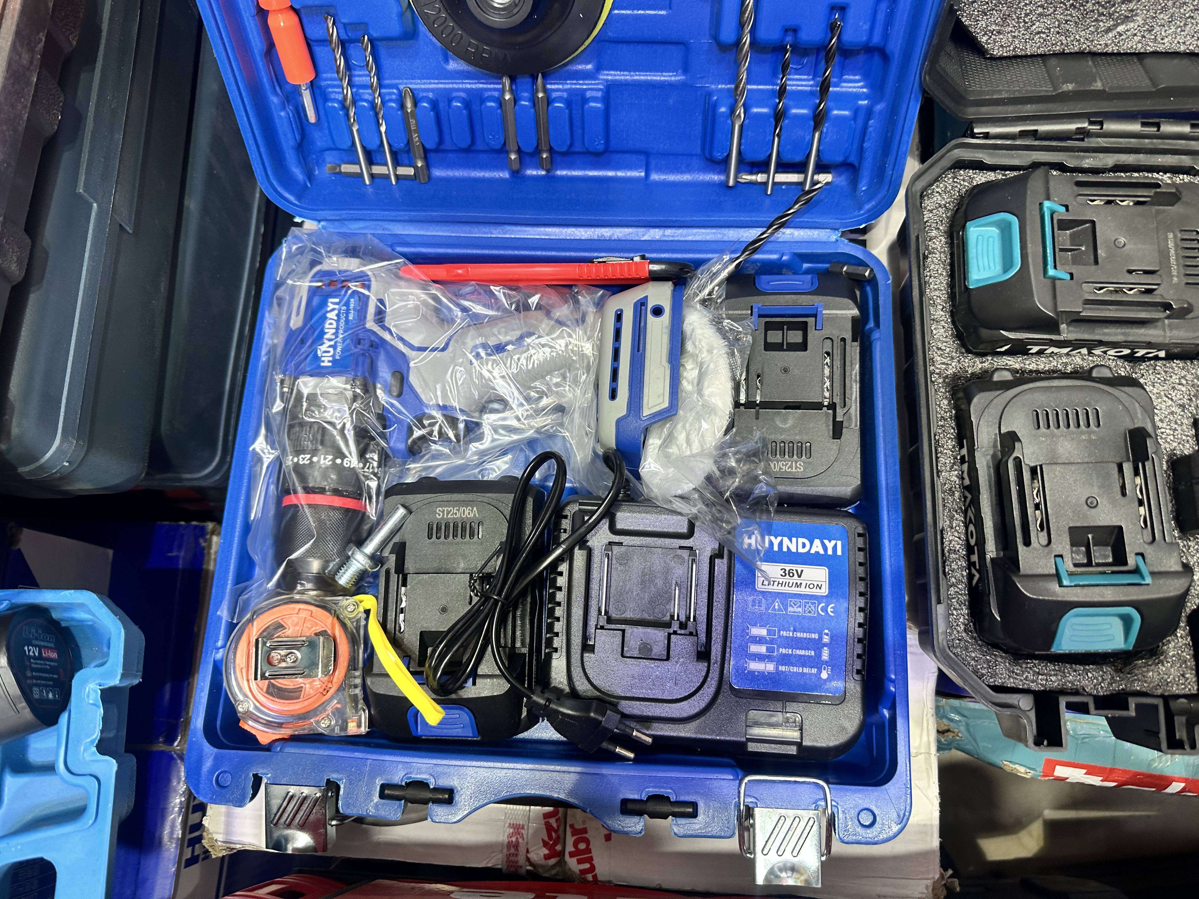 دستهبندی: استاد کاردرل شارژی هیوندا دو باطری سرنظام فلزی وپمپ کامل همراه پولیش مته وبوکس: باطری لیتیومی